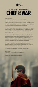 Chief of War follows the worldwide success of Apple TV+’s hit series See, also starring Jason Momoa. With its commitment to premium storytelling, Apple TV+ continues to deliver compelling dramas, groundbreaking documentaries, and award-winning entertainment.